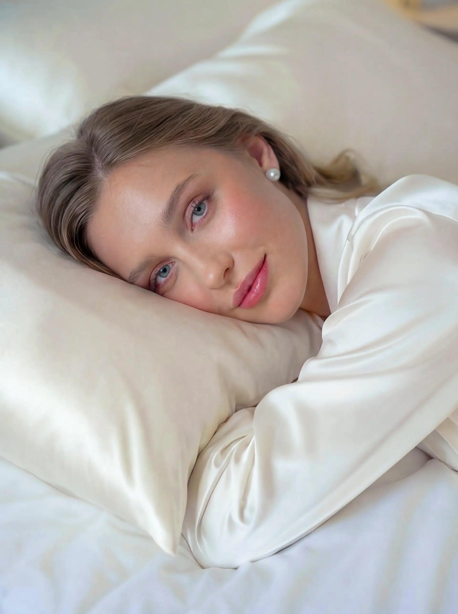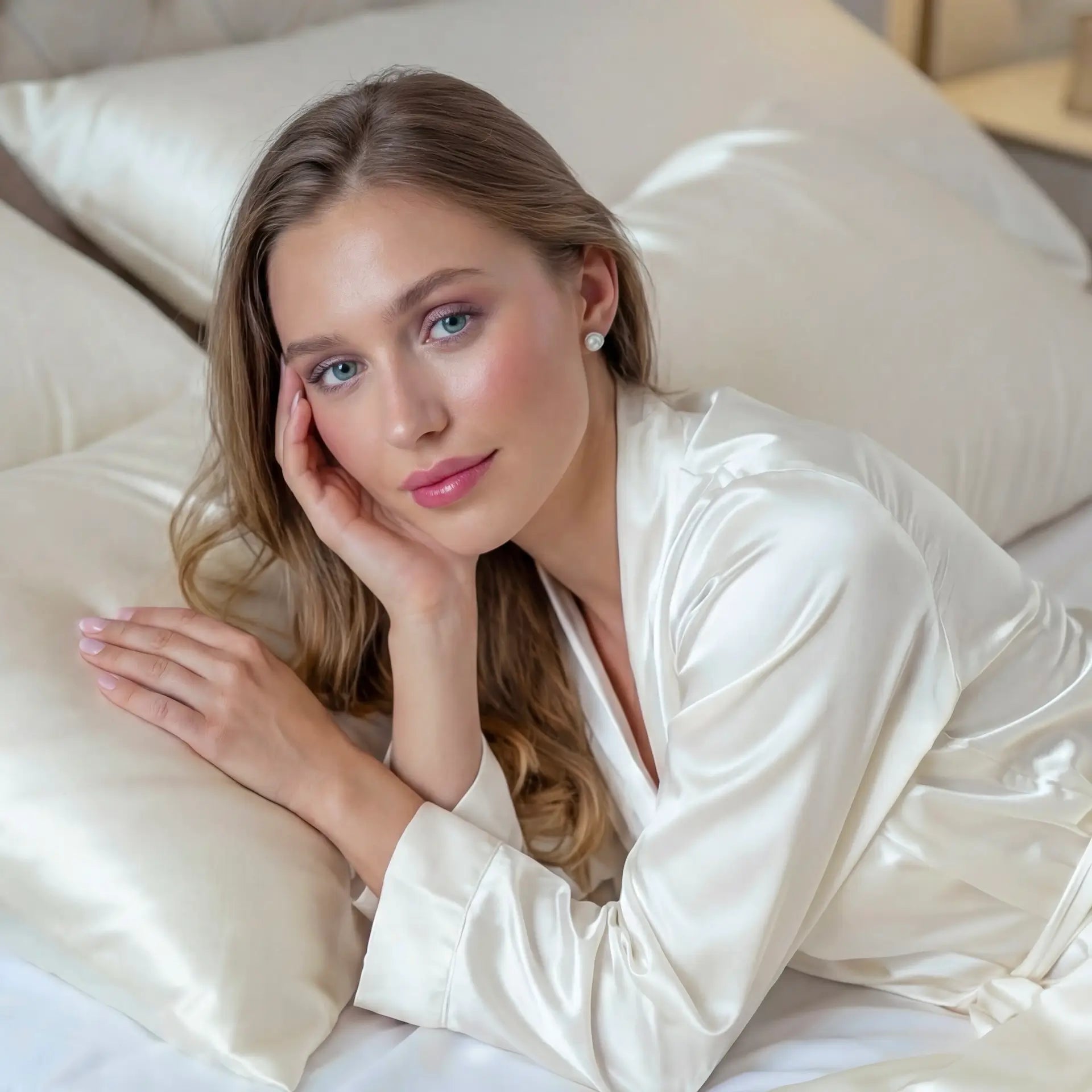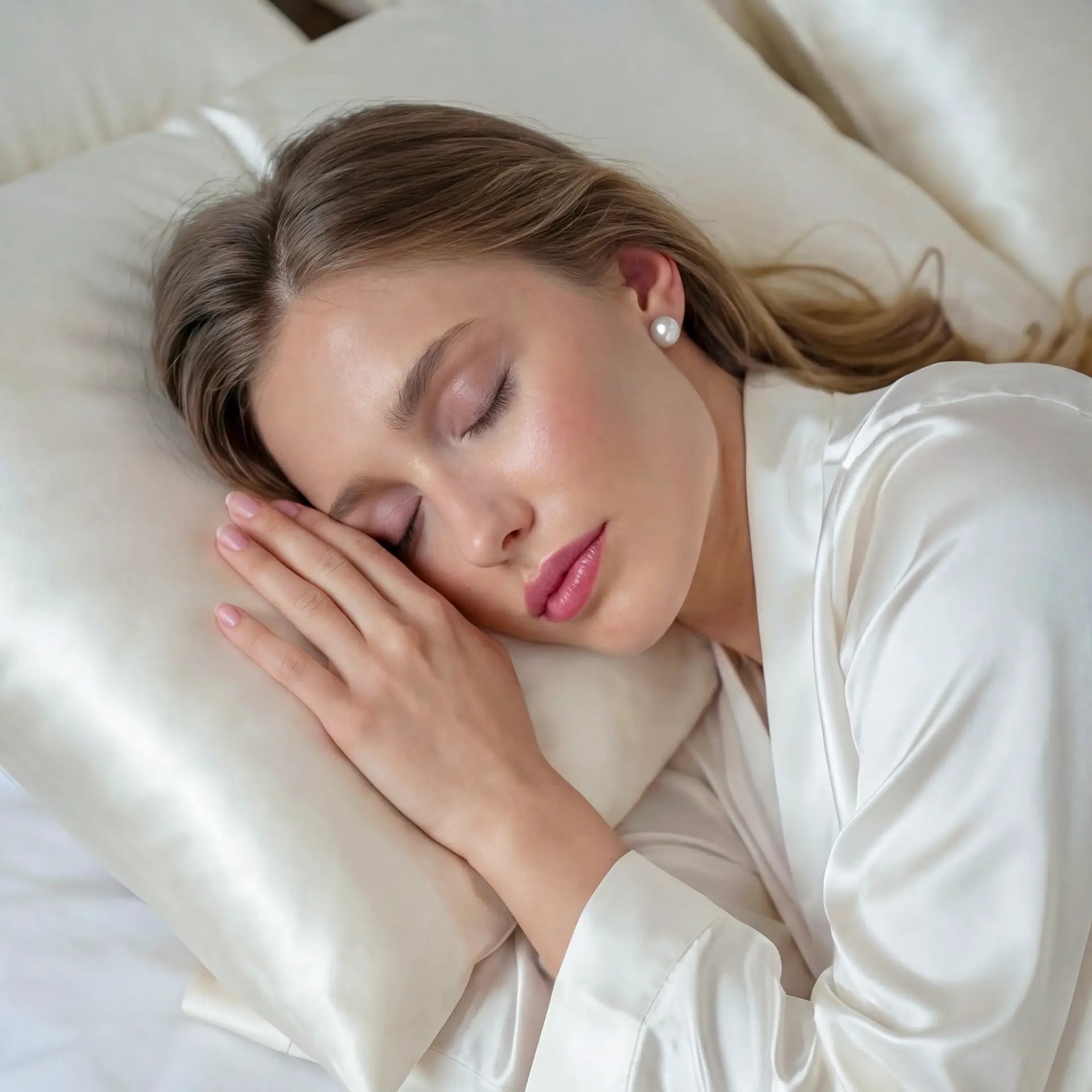 Die natürlich glatte Textur der Seide reduziert Reibung und hilft, Schlaflinien, feine Falten und Haarbruch zu vermeiden, während sie gleichzeitig Haut und Haar mit Feuchtigkeit versorgt. Im Gegensatz zu Baumwolle, die Feuchtigkeit aufnimmt, bewahrt Seide die natürliche Hydratation der Haut und erhält die Geschmeidigkeit des Haares, wodurch Frizz und Spliss reduziert werden.